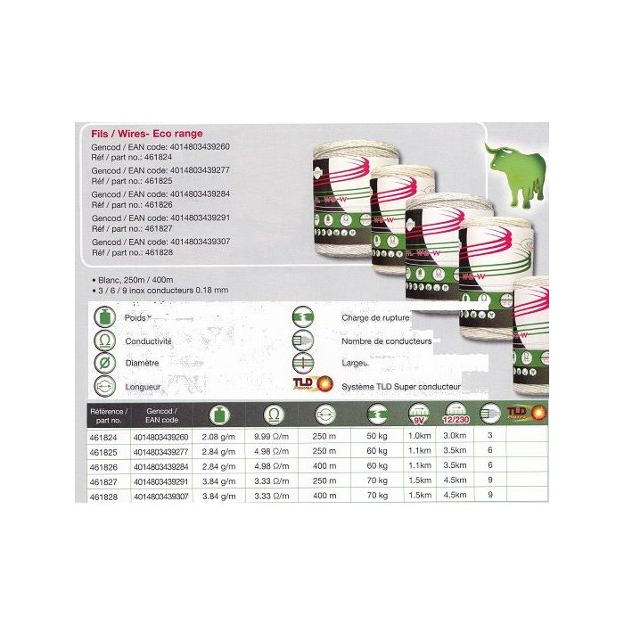 Fils de clôture électrique blanc multiconducteurs Inox pour clôture courte.
