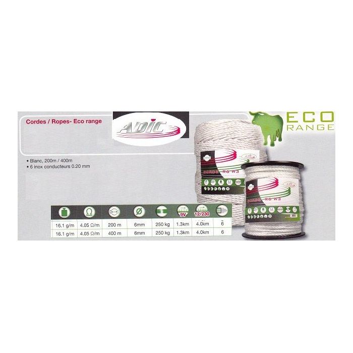 Corde de clôture électrique TLD power diamètre 6 mm blanc&jaune multiconducteurs Inox pour clôture courte.