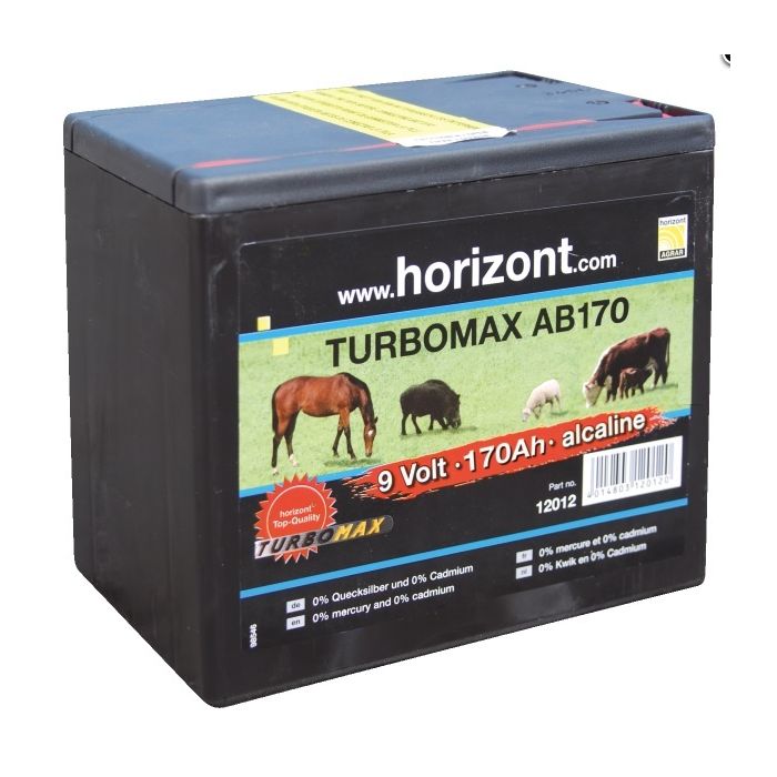 Pile 9V grand format pour électrificateur type Horizont Turbomax AB alcaline (170Ah à 200Ah)