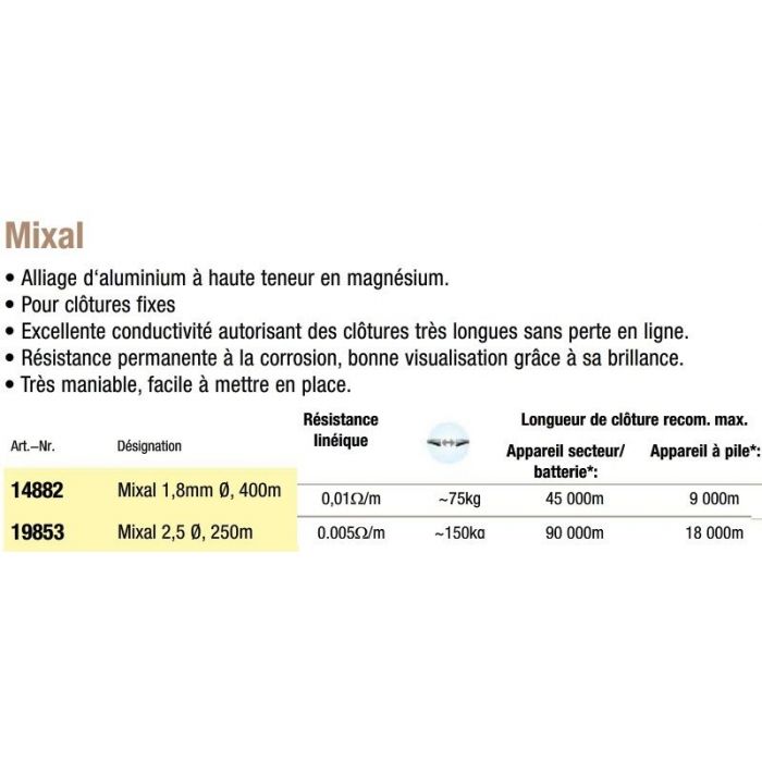 Fil mixal pour clôture électrique fixes, excellente conductivité diamètre 1,8 & 2,5 mm