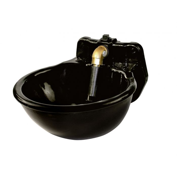 Abreuvoir chauffant avec soupape tubulaire. Il est doté d'un bol en fonte de grande qualité, émaillé noir. La coupelle en fonte est thermolaquée noire. Le débit d'eau sur la soupape tubulaire est réglable. Cet abreuvoir offre un nouveau concept de chauffage en chauffant la soupape pour la protéger du gel. Puissance de chauffe : environ 80 W. Le bac est facile à monter au mur ou sur un tuyau, la soupape doit être à proximité de l'installation. L'alimentation se fait via un transformateur d'au moins 100 watts (non fourni). Vous avez une possibilité de raccordement en haut et en bas pour filetage intérieur G1/2. Il pèse environ 11,5 kg. Le bac offre un volume de 1,6 litres. Cet abreuvoir est adapté aux systèmes de chauffage à circulation. Connexion de courant simple grâce au boîtier à bornes se trouvant à l'extérieur.