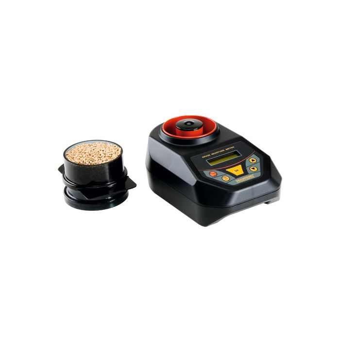 Mesureur d'humidité portable, que vous pourrez utiliser directement sur le terrain. Il convient à la mesure de l'humidité, des céréales usuelles dans le domaine agricole. A cet effet, 30 catégories de céréales sont préprogrammées par défaut : seigle, blé, blé de qualité, triticale, orge, avoine, sarrasin, haricot, lupin jaune, lupin bleu, petit-pois, pois fourragers, colza, fèves, maïs, tournesol sans écale, tournesol avec écale, ivraie, fétuque rouge, trèfle blanc, petit haricot, haricot grimpant, moutarde, millet, soja, sorgho, lin, riz blanc, riz sauvage, grains de café. Ce mesureur d'humidité est très simple d'utilisation et offre une mesure rapide et précise des données. Il peut être reprogrammé par l'utilisateur : les valeurs d'un produit donné peuvent ainsi être adaptées à une utilisation spécifique et à un besoin particulier. Il fonctionne avec une pile 9 volt. Affichage de mesure sur écran LCD Display, alphanumérique de 2 x 16 chiffres. Testé DLG. Caractéristiques techniques : Energie : pile 9 V. Consommation énergie : env. 12 mA. Indication : LCD Display, alphanumérique, 2 x 16 chiffres. Mesure de température : 0 à +70 °C Exactitude de la mesure de température : +- 1 °C Précision de la mesure d'humidité : 1 % (jusqu'à 10 % d'humidité) 1,5 % (jusqu'à 20 % d'humidité) Température de stockage : 0 à +45 °C.