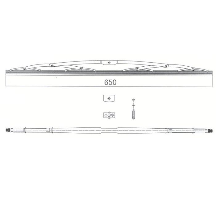 Balai d'essuie-glace 650 mm pour pour cabine avec bras lisse.