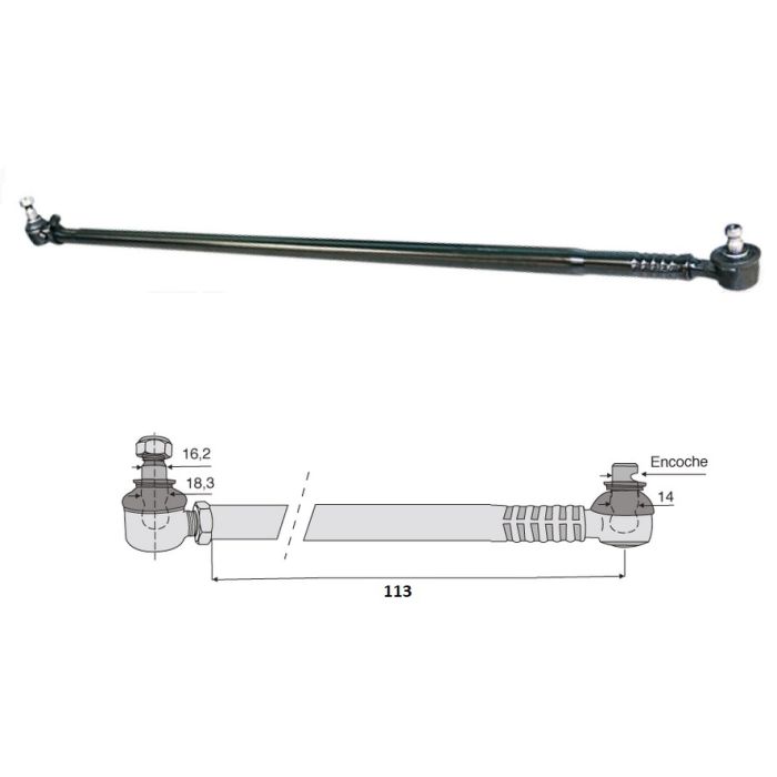 Barre de direction tracteur Case IH 323, 353, 423 réglable de 1180 à 1225 mm