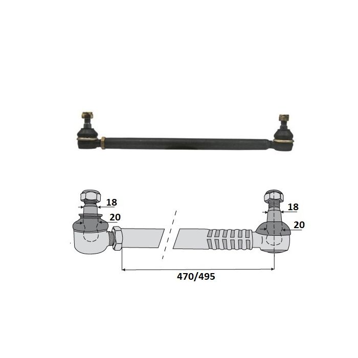 Barre de direction rotule M16 x 1.5 cône 18/20 mm, longueur 470/495 mm
