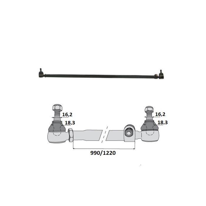 Barre de direction rotule cône 16/18, longueur 1070 à 1300 mm essieu tracteur 2 roues motrice