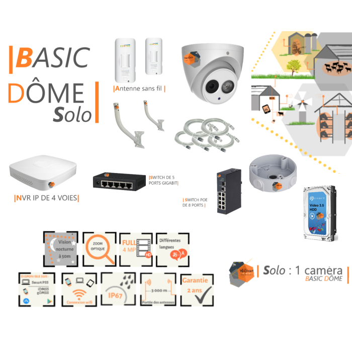 | BASIC' Dôme Solo | Dispositif de vidéosurveillance complet comprenant 1 caméra Basic' Dôme VIsio Expert