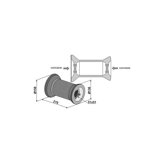 Bobine de Cover-Crop pour arbre carré 50x50 longueur 270 mm diamètre 136/158 mm