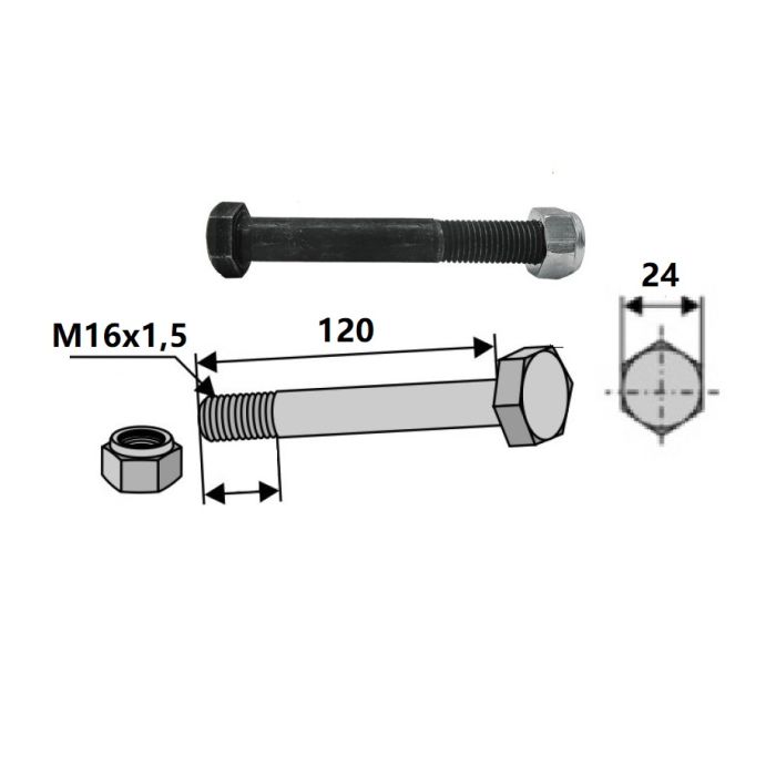 Boulon M16x120 pour marteau de broyeur Agrimaster, CMV, M16 x 1.5 x 120 mm, 10.9