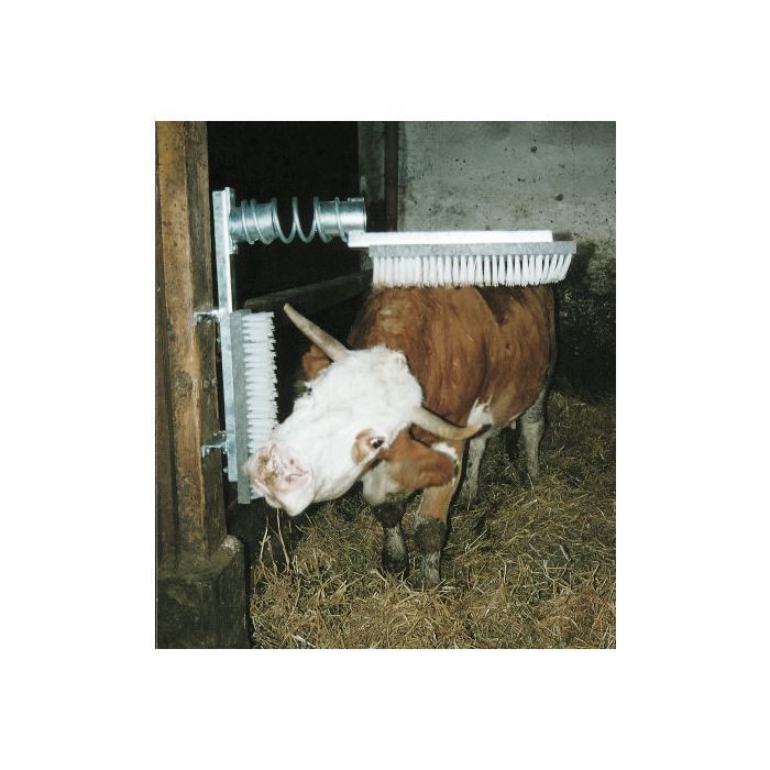 Brosse d'étable complète avec ressort de conception très robuste. La brosse nylon pour nettoyage et soin du poil n'arrache pas les poils. La brosse horizontale, peut bouger dans tous les sens et fait preuve d'une grande flexibilité pour amortir les bonds des animaux. Elle s'adaptable à toutes les tailles d'animaux.