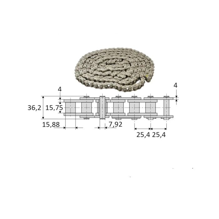 Chaîne à rouleaux - pas 25.4 - longueur 5 m - modèle renforcé
