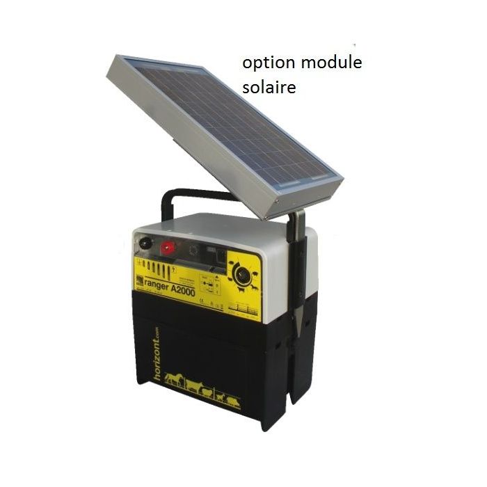 • Piquet de terre. Pour une utilisation maximal de l'électrificateur Ranger A2000 mettre 2 piquets de terre longueur de 1 m En option le module solaire est recommandé pour une tenue de la batterie plus longue.