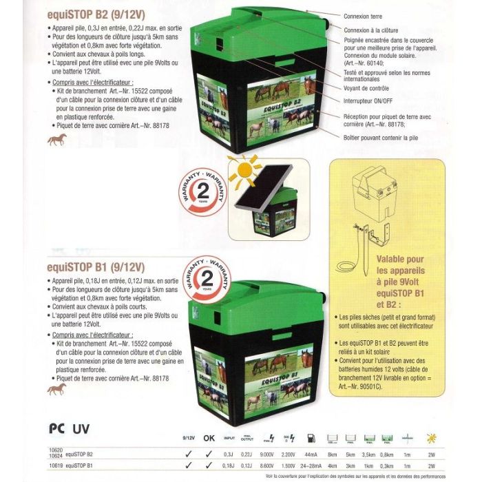Nous recommandons cette électrificateurs equiSTOP B2 pour le gardiennage des chevaux, électrificateur à pile 9 volts ou batterie 12 volts.