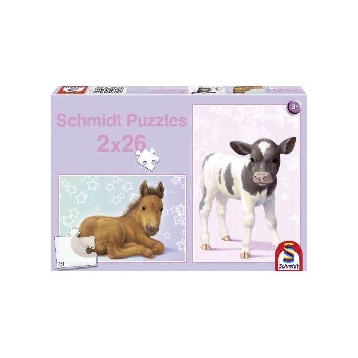 Coffret composé de 1 puzzle 26 pièces poulain et 1 puzzle 26 pièces veau.