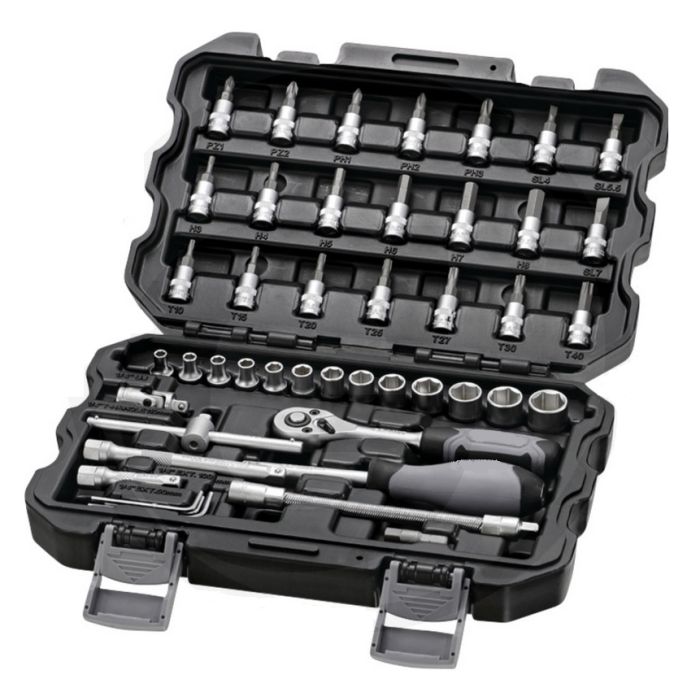 Coffret de douilles professionnels 45 pièces avec les outils de vissage les plus courants.