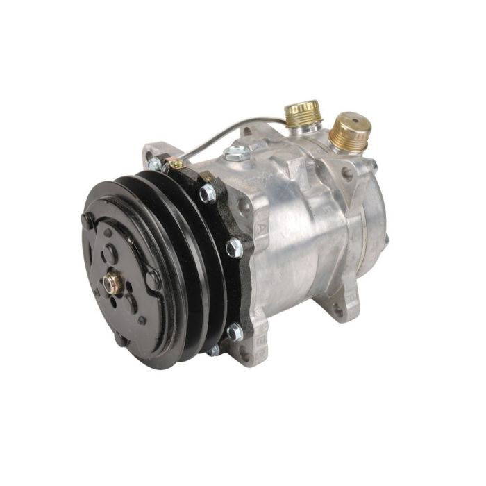 Compresseur SD5H11 6332 Ø125 A2G 12Volts vertical 1"X1/4 adaptable Sanden pour tracteur Case IH JX, JXC, JXN, JXU, JXV, New-Holland TN, TND, TNF, TNV, TNS
