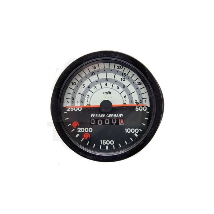Caractéristiques : Ø 100 mm, encadrement noir, 0-30 km/h, 500-2500 t/min, sans témoin lumineux, raccord câble 45°.
