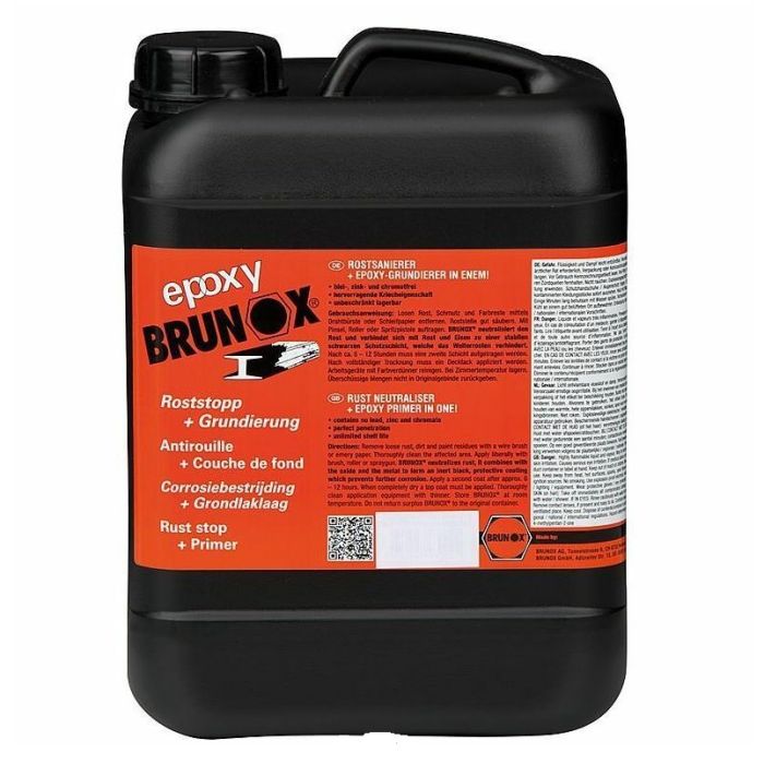 Convertisseur de rouille et primer époxy compatible avec les peinture disponibles sur notre site. BRUNOX® bidon 5L