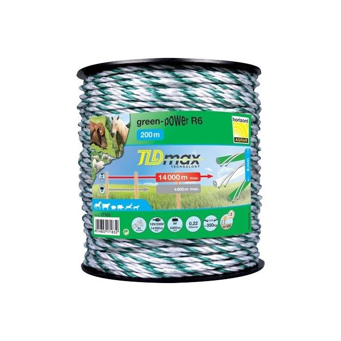 Cordelette GREEN-POWER R6 couleur verte diamètre 6mm, pour clôture électriques Longues.