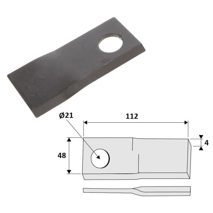 Couteaux pour faucheuse Pöttinger Novacat, Novaalpin, Novadisc 112x48x4 trou Ø21 vrillé gauche 434.969