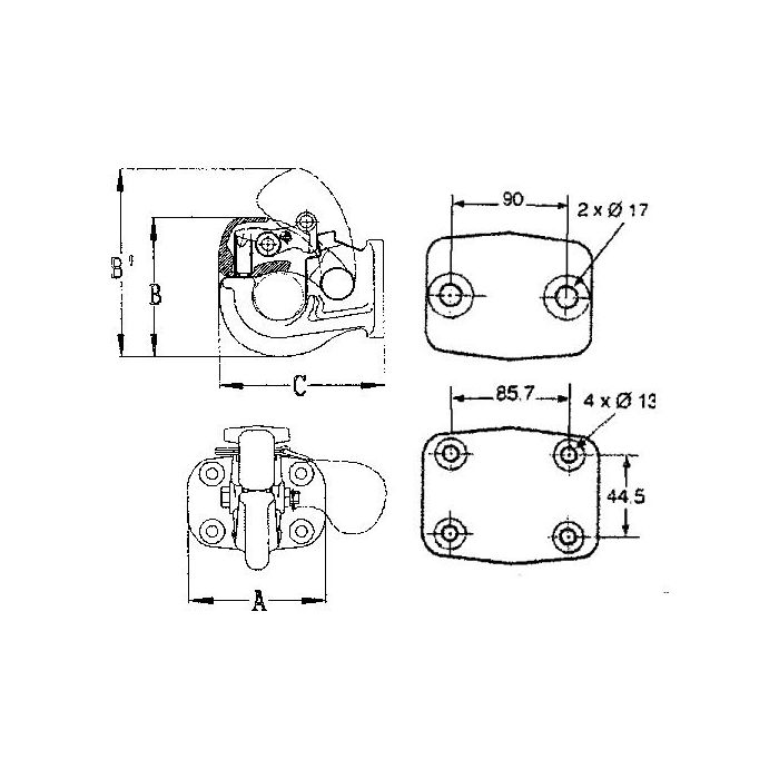 Crochet fixe fixation par 2 trous entraxe 90mm