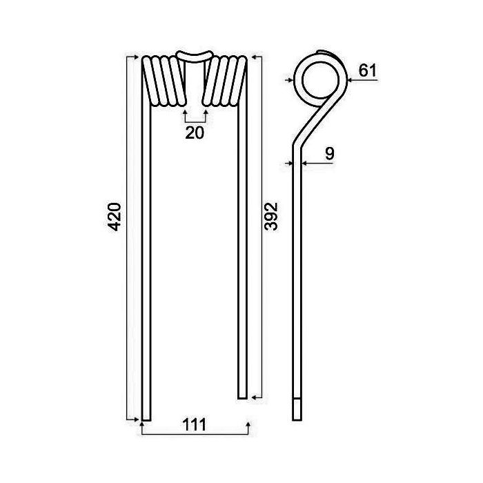Dent de faneuse droit Strela Vicon Fanex 400, 500, 600, 730 (à pd 1987) OEM : VGPZ399, PZ-ZWEEGERS