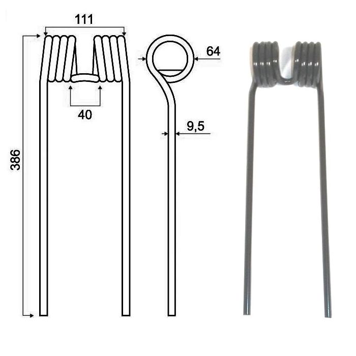 Dent de faneuse andaineur Girostar Kuhn GRS20, GRS21 référence 57601100, L386 D9,5mm