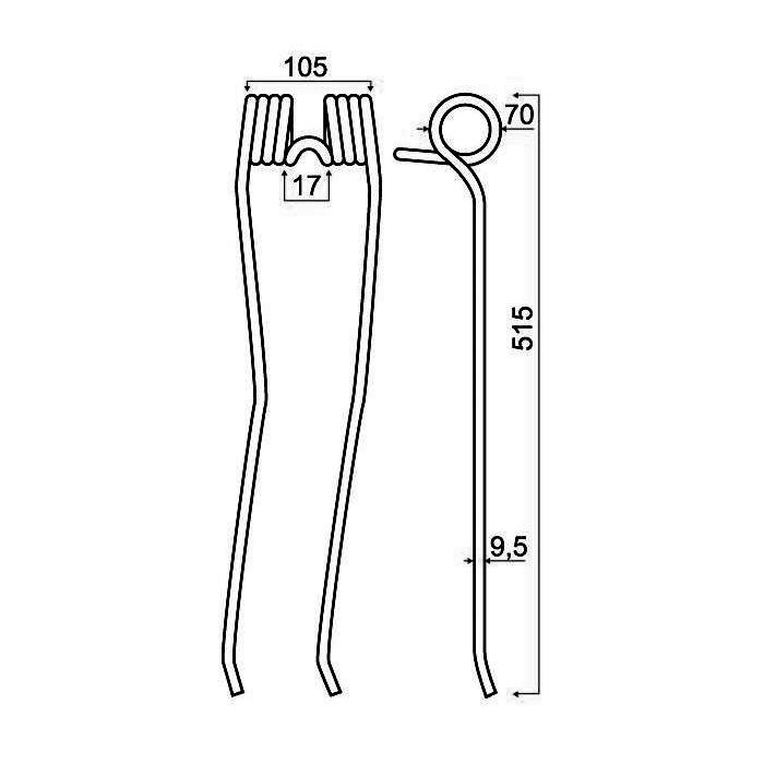 Dent de faneuse Kuhn GRS25N L515 D9,5mm 57644010 (à partir du N° de série 8000001)