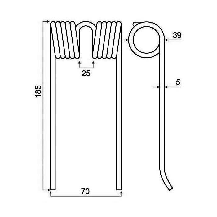 Dent de big-baller Rivierre-Casalis L185 Ø5mm pour type: presse MC8080, RC50, round-baller RC115, RC125