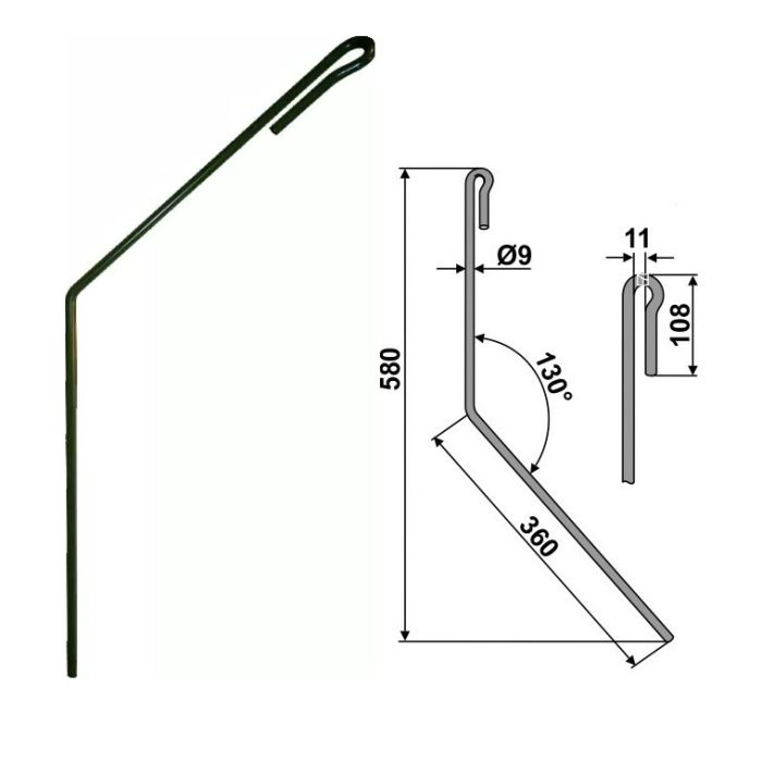 Dent FlexiDoigts II/III long pour recouvreur de semoir Amazone MD 8, D9, D9-25, D9-30, D9-60, D9-120, AD 03, AD-P 303, AD-P 353, AD-P 403, Airstar, AS 02, Cirrus 3001, Cirrus 4001, Cirrus 6001, Variant 3-1500/4-2100