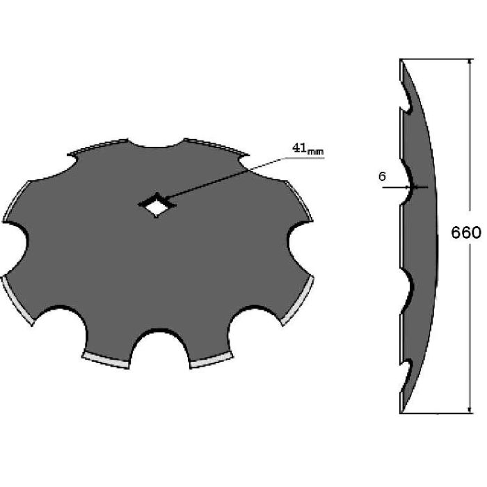 Disque de covercrop bombé crénelé diamètre 660x6 carré 41 mm