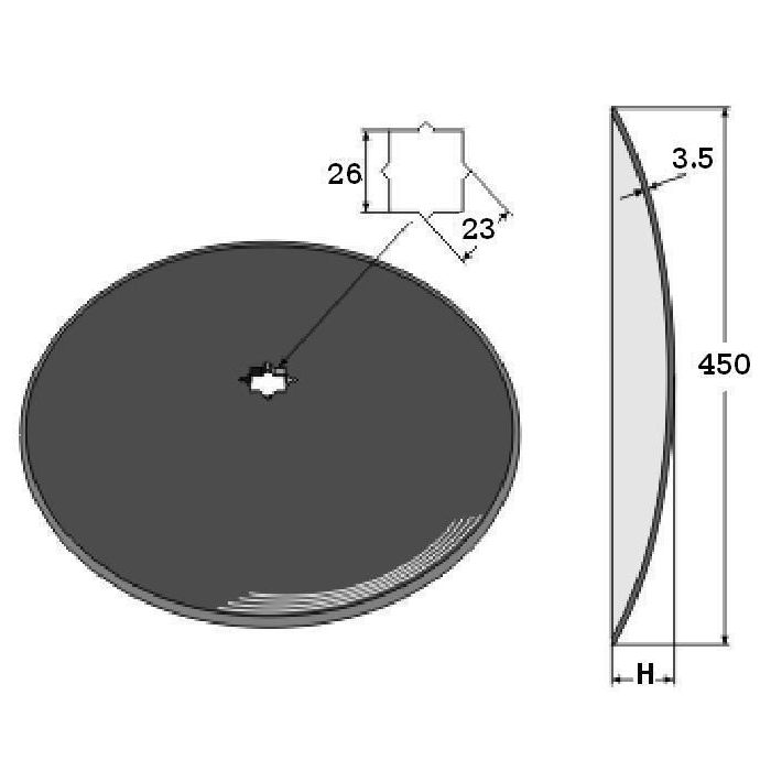 Disque de covercrop bombé lisse diamètre 450X3.5 carré 23/26