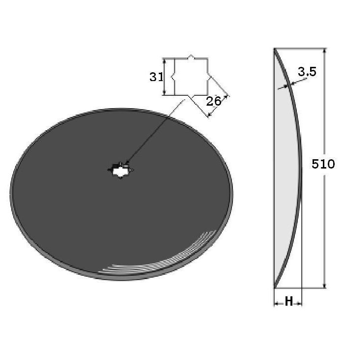 Disque bombé lisse diamètre 510X3.5 carré 26/31