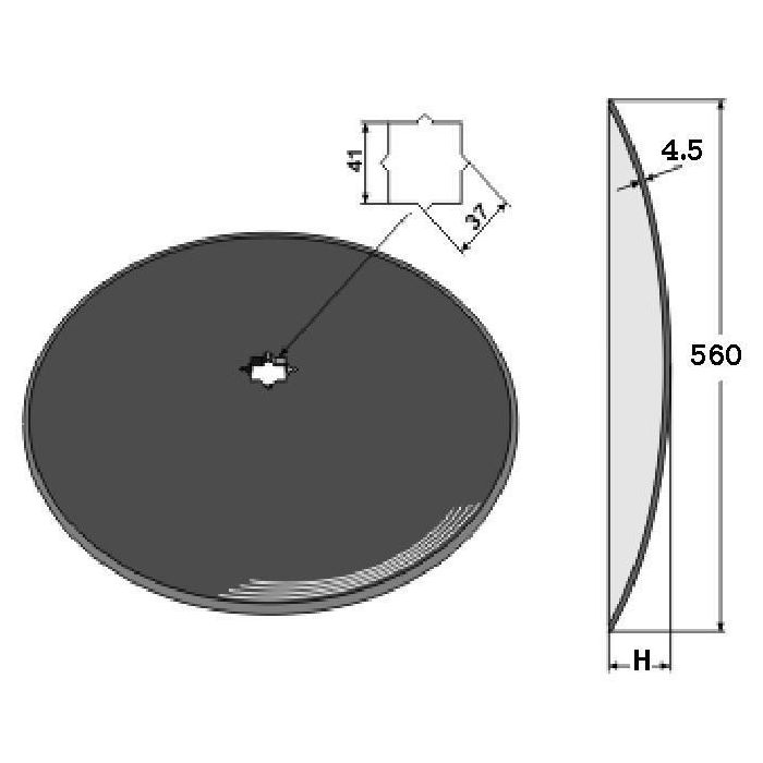 Disque bombé lisse diamètre 560x4.5 carré 36/41