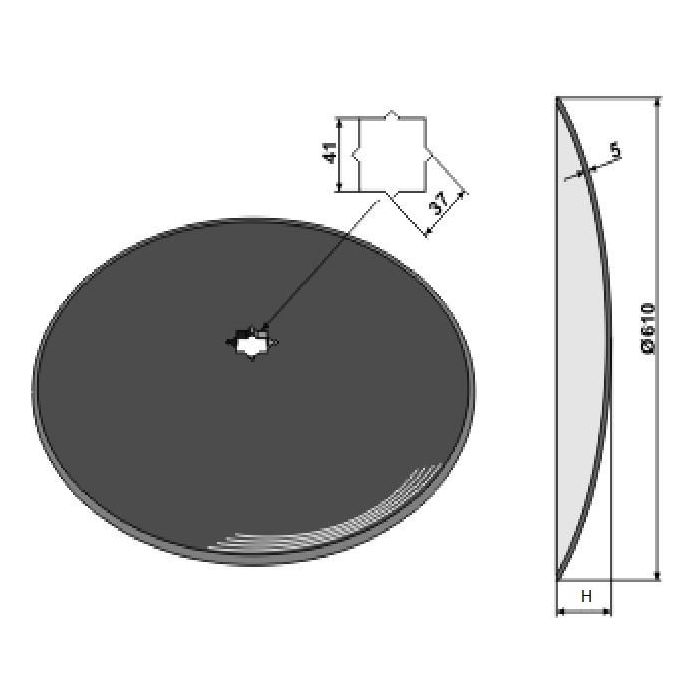 Disque bombé lisse diamètre 610x5 carré 36/41