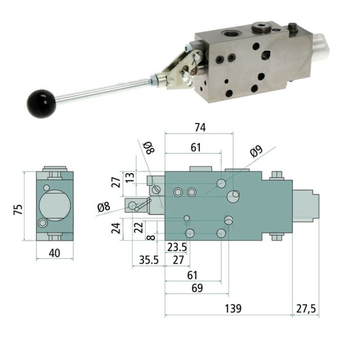 Caractéristiques techniques: pression max.: 210 bars débit max.: 40 l/min. couple de serrage: 30 Nm raccords: M 18 x 1.5 dimensions: 180 x 40 x 75 mm