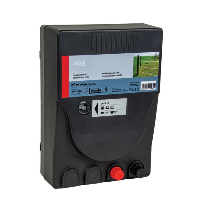 Le poste combiné 12V/230V AGE K200 est pratique et simple d’utilisation. Son boitier en ABS est très résistant aux chocs. Cette gamme est dédiée aux chevaux, les bovins, les porcs, les moutons, les chèvres. Indicateur de voltage LED.