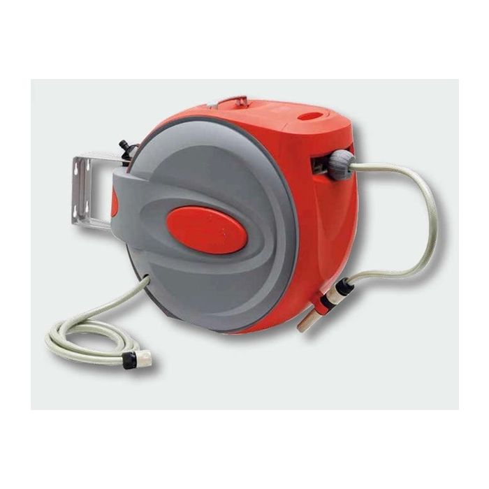 Enrouleur automatique 30 m complet avec tuyau, raccord et jet réglable, idéal pour l'arrosage