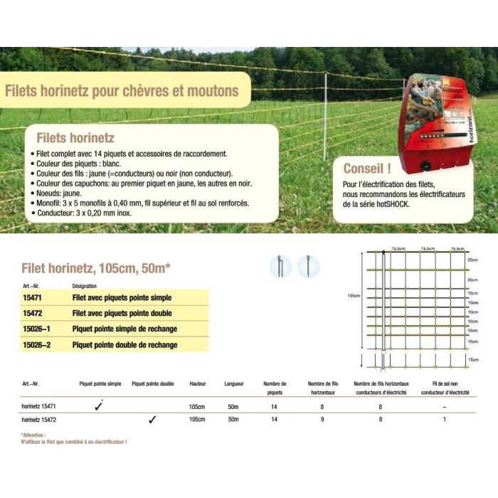Filet à chèvres avec piquet, Horizont HORINETZ SUPER hauteur 105cm longueur 50 mètres.