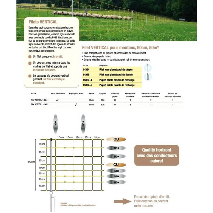 Filet à moutons avec piquet, Horizont VERTIKAL hauteur 90cm longueur 50 mètres.
