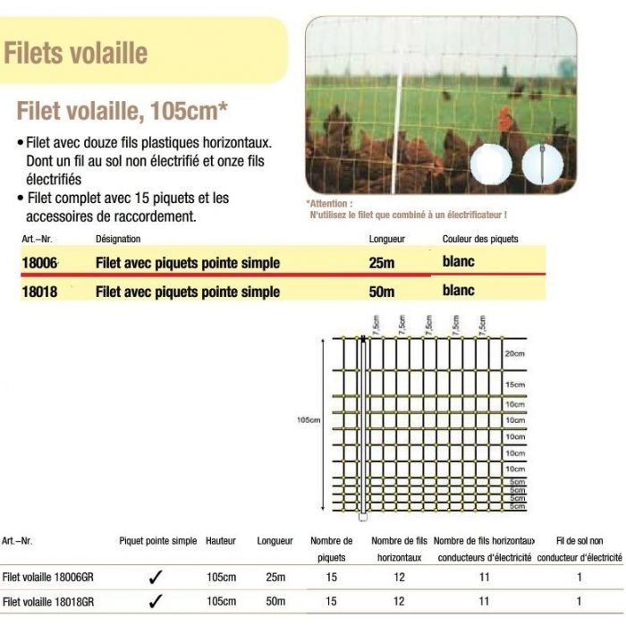 Filet à volaille avec piquet, Horizont FLEXINET couleur Blanc/Jaune/noir.