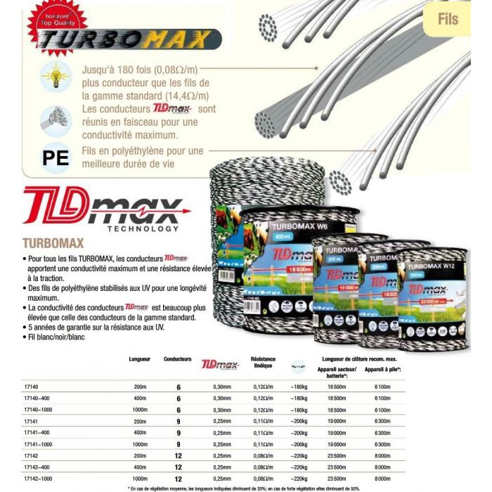 Fils Turbomax TLDmax, très haute qualité pour clôture électriques toute utilisation.