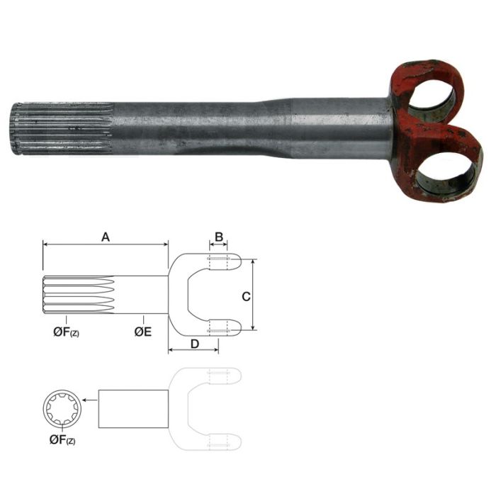 Fourche extérieur pont avant ZF APL3054 tracteur Case IH 1255 XL, 1455 XL, Deutz-Fahr DX 140, DX 145, DX 160, DX 7.10, John-Deere 4050, 4250, 4350, 4450