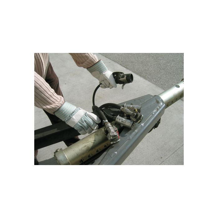 Gant de travail en croûte de cuir de coloris nature avec intérieur doublé et dos avec rayures. Ils présentent un revers caoutchouc et des coutures doubles. Taille unique.