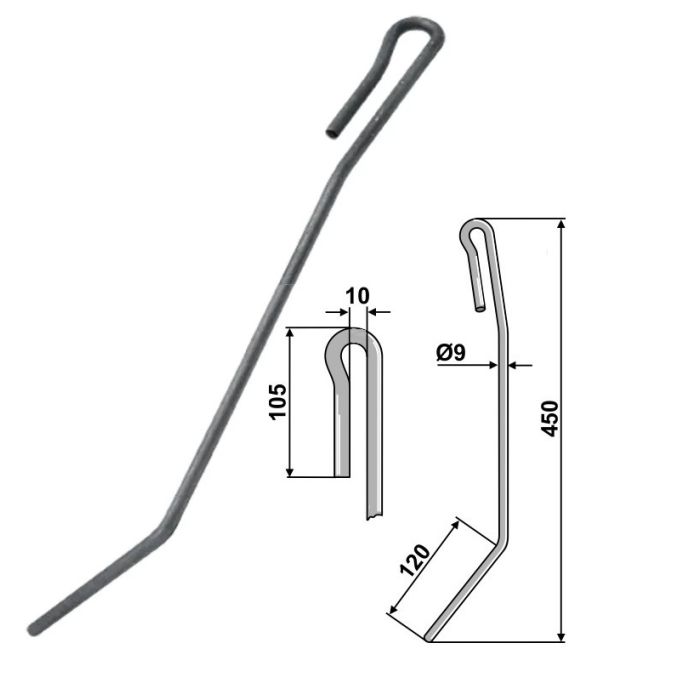 Dents de herse centrale, courte (pour brides en ordre décalé II)