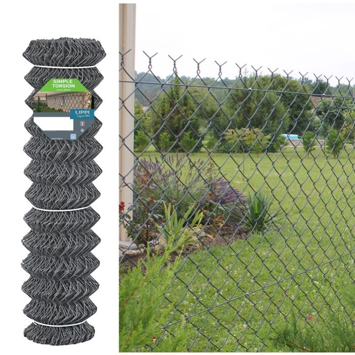 Grillage simple torsion Hauteur 1 m Plastifié Gris, rouleau de 25 m - LIPPI ECO