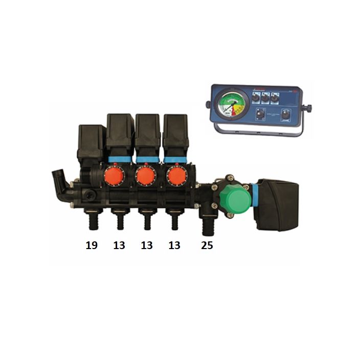 Groupe de commande 3 sections électrique avec vannes régulatrice électrique et manomètre dans la cabine 0/25 Bars ARAG