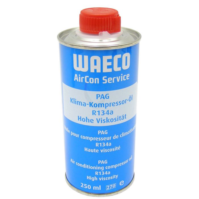 Flacon de 250 ml d'huile universelle WAECO pour compresseur de climatisation.