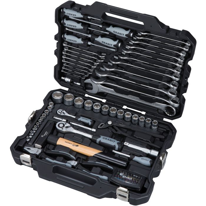 • dans un coffre à outils GRANIT BLACK EDITION de haute qualité et très stable avec verrous métalliques et système de rangement