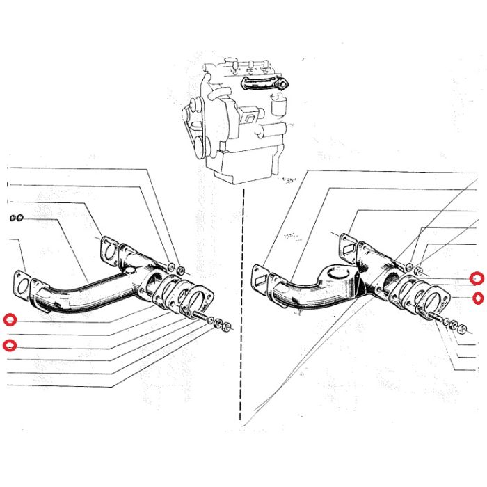 Joint d'échappement tracteur Renault D30, N71, E71, V71, 71S, super 7, super 7D moteur 3 cyl Perkins 3/144, 3.152